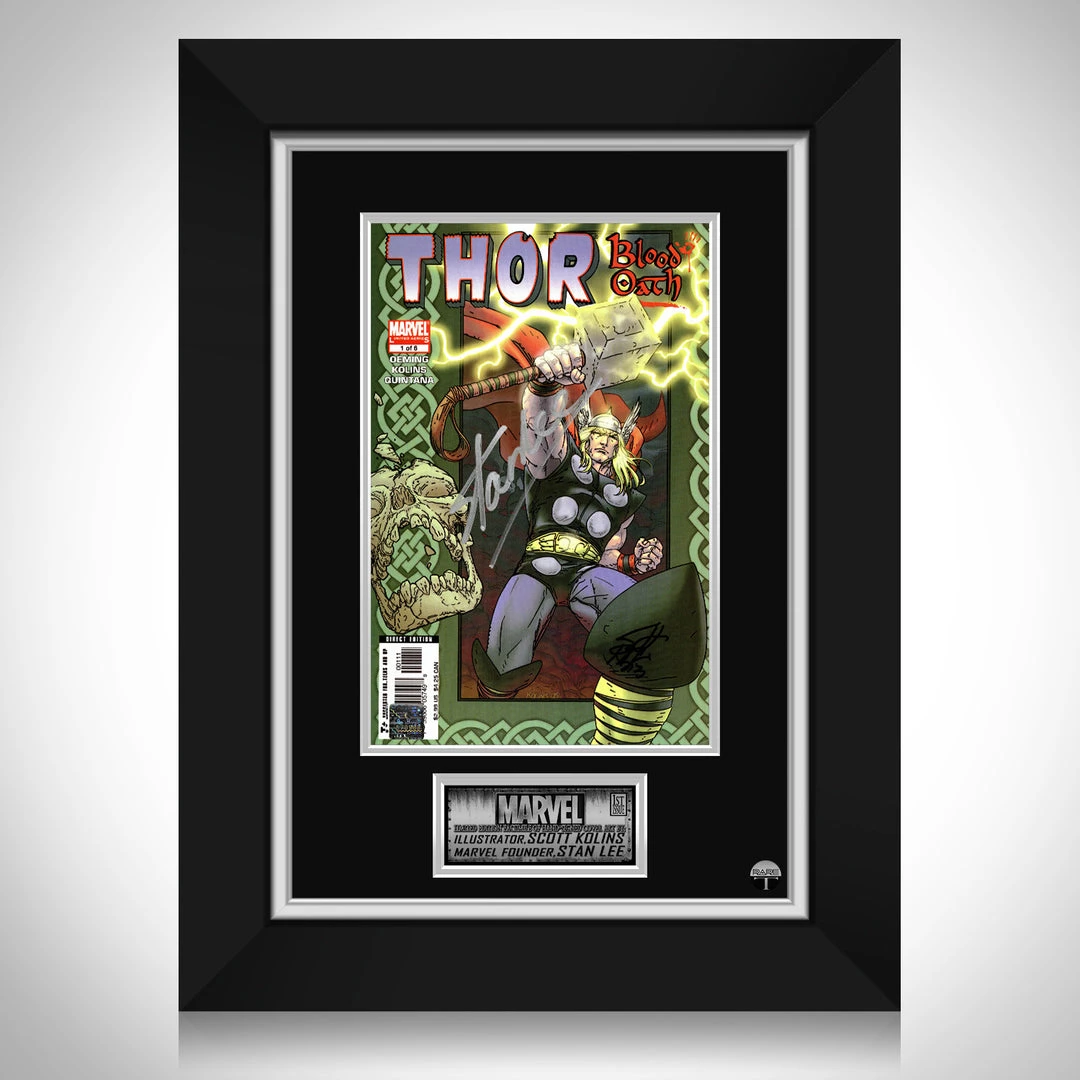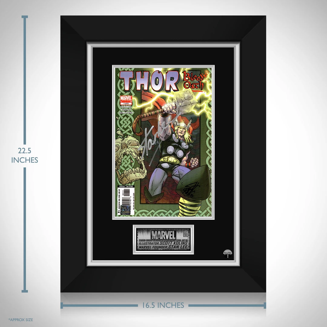Pay homage to Thor with this gallery-framed, officially licensed, limited edition facsimile of hand-signed Thor Blood Oath #1 Comic Book Cover Art, originally signed Marvel Co-Founder & former executive producer of all Marvel Movies. the legendary, late great Stan Lee & Marcus McLaurin, of which is strictly limited to 100 units Worldwide, and has been approved and numbered accordingly.