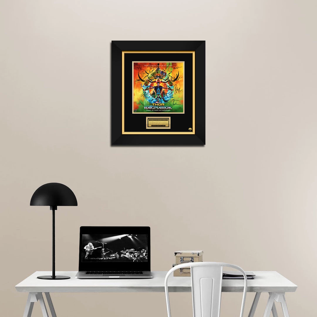 Pay homage to one of the most iconic movie of all time, Thor Ragnarok , with this gallery-framed, officially licensed, limited edition facsimile of the Hand-Signed Original Motion Picture Soundtrack LP Cover originally signed by Anthony Hopkins, Benedict Cumberbatch, Cate Blanchett, Chris Hemsworth, Idris Elba, Jeff Goldblum, Mark Ruffalo, Matt Damon, Sam Neil, Tom Hiddleston & Stan lee , of which is strictly limited to 100 units Worldwide, and has been approved and numbered accordingly.