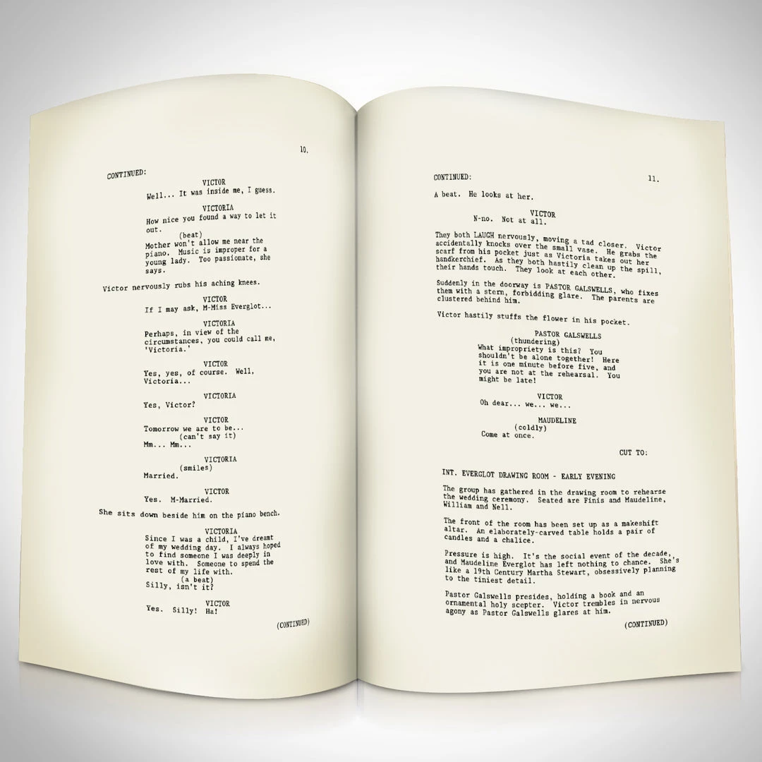— Collector Grade Proprietary Exclusive VELVET TOUCH water/scratch resistant cover. — Collectible Facsimile of Original Hand-Signed Tim Burton’s Corpse Bride movie Script Custom Frame.