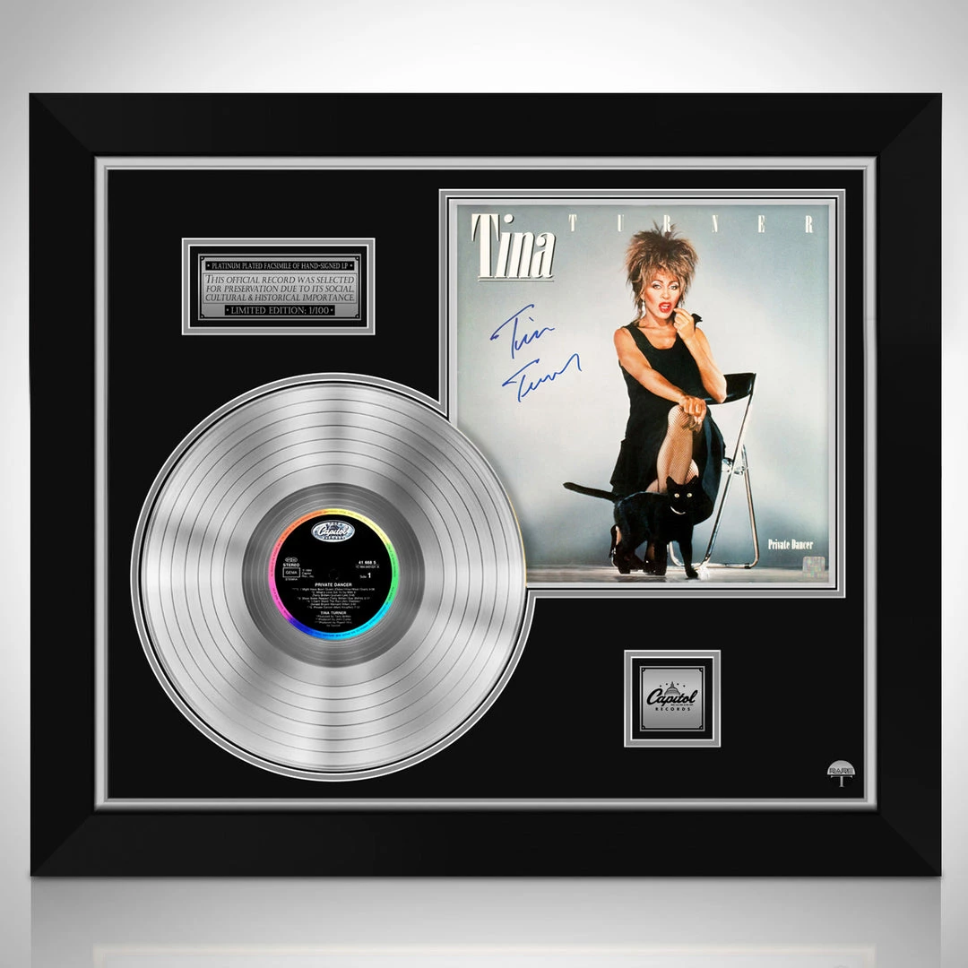– Collectible Tina Turner facsimile of hand-signed Platinum Plated LP Custom Frame