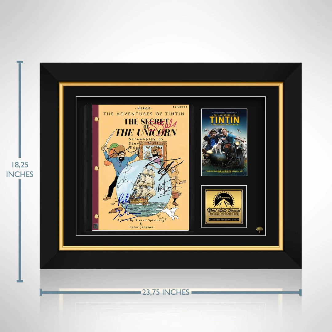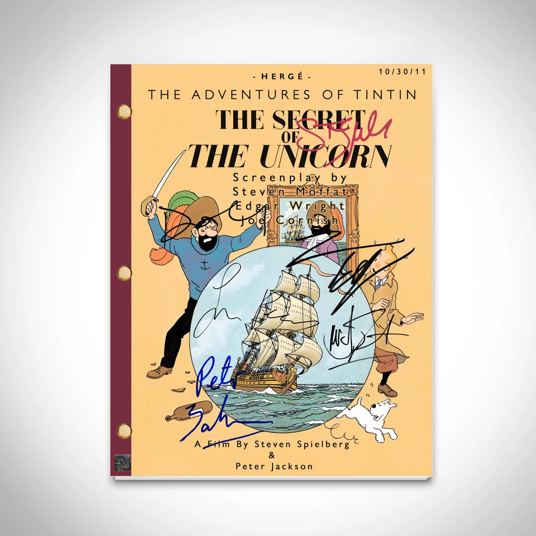 Pay homage to The Adventures of Tintin: The Secret of the Unicorn , with this Paramount Pictures fully licensed facsimile of the official signed movie script, originally signed by actors Steven Spielberg, Peter Jackson, Jamie Bell, Andy Serkis, Daniel Craig, Nick Frost & Simon Pegg , of which is strictly limited to 100 units Worldwide and has been approved and numbered accordingly.