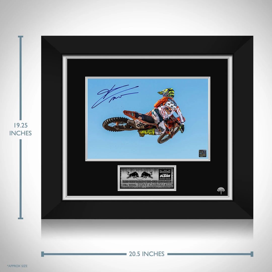 Pay homage to Tony Cairoli, with this gallery-framed, officially licensed, limited edition facsimile of the Hand-Signed photo, originally signed by Tony Cairoli, of which is strictly limited to 100 units Worldwide, and has been approved and numbered accordingly.