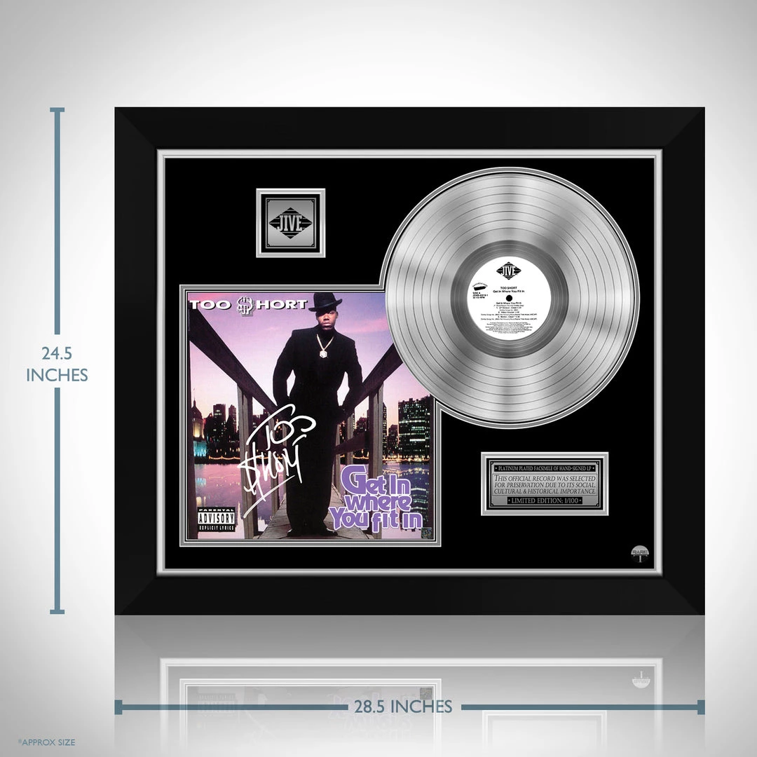 Pay homage to one of the most iconic American rapper of all time Too Short , with this gallery-framed, authentic Jive records fully licensed facsimile of the official Hand-Signed Platinum Plated LP Record and LP Cover Get in where you fit in Originally signed by Todd Anthony Shaw , of which is strictly limited to 100 units Worldwide and has been approved and numbered accordingly.
