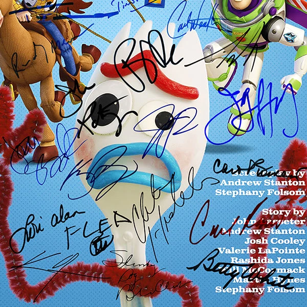 Pay homage to Toy Story 4 , with this Walt Disney Studio fully licensed facsimile of the official signed movie script, originally signed by actors Tom Hanks, Tim Allen, Annie Potts, Tony Hale, Keagan-Michael Key, Jordan Peele, Madeleine McGraw, Christina Hendricks, Keanu Reeves, Ally Maki, Jay Hernandez, Lori Alan, Joan Cusack, Randy Newman, Wallace Shawn, John Ratzenberger, Blake Clark, Carl Weathers, Jeff Garlin, Mel Brooks, Carol Burnett, Betty White, Carl Reiner, Bill Hader, Patricia Arquette, Timothy Dalton & Flea , of which is strictly limited to 100 units Worldwide and has been approved and numbered accordingly.