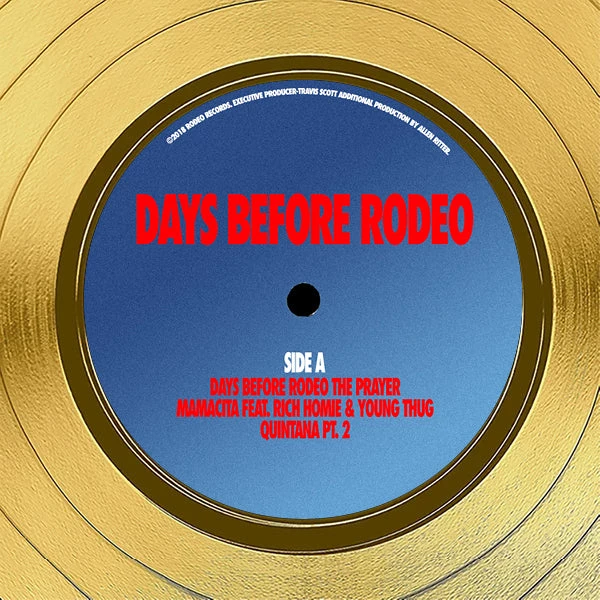 Pay homage to one of the most iconic American rapper, singer, songwriter of all time Travis Scott , with this gallery-framed, authentic Grand Hustle Records fully licensed facsimile of the official Hand-Signed 24K Gold LP Record and LP Cover Days Before Rodeo Originally signed by Jacques Bermon Webster II “Travis Scott” , of which is strictly limited to 100 units Worldwide and has been approved and numbered accordingly.