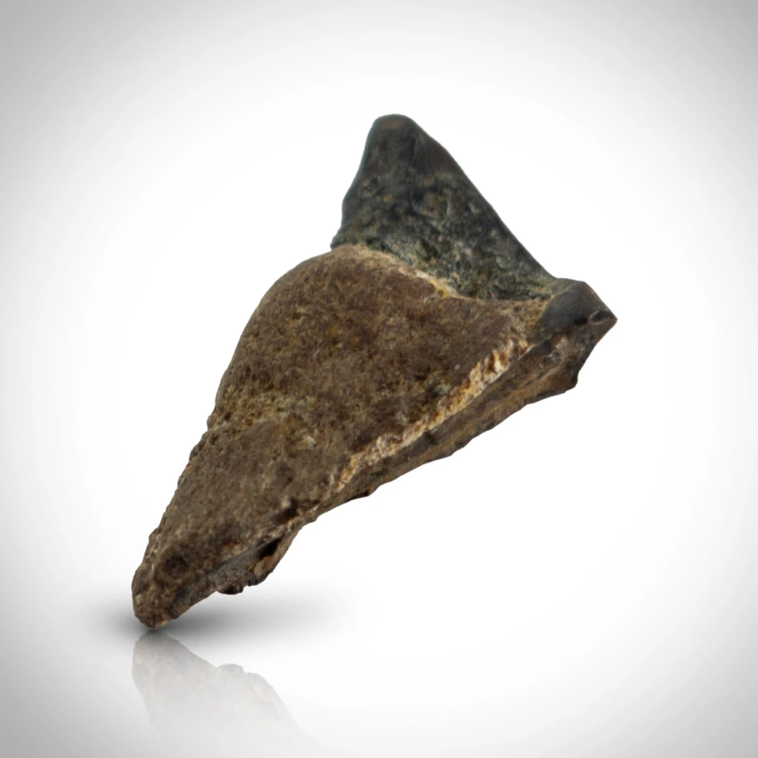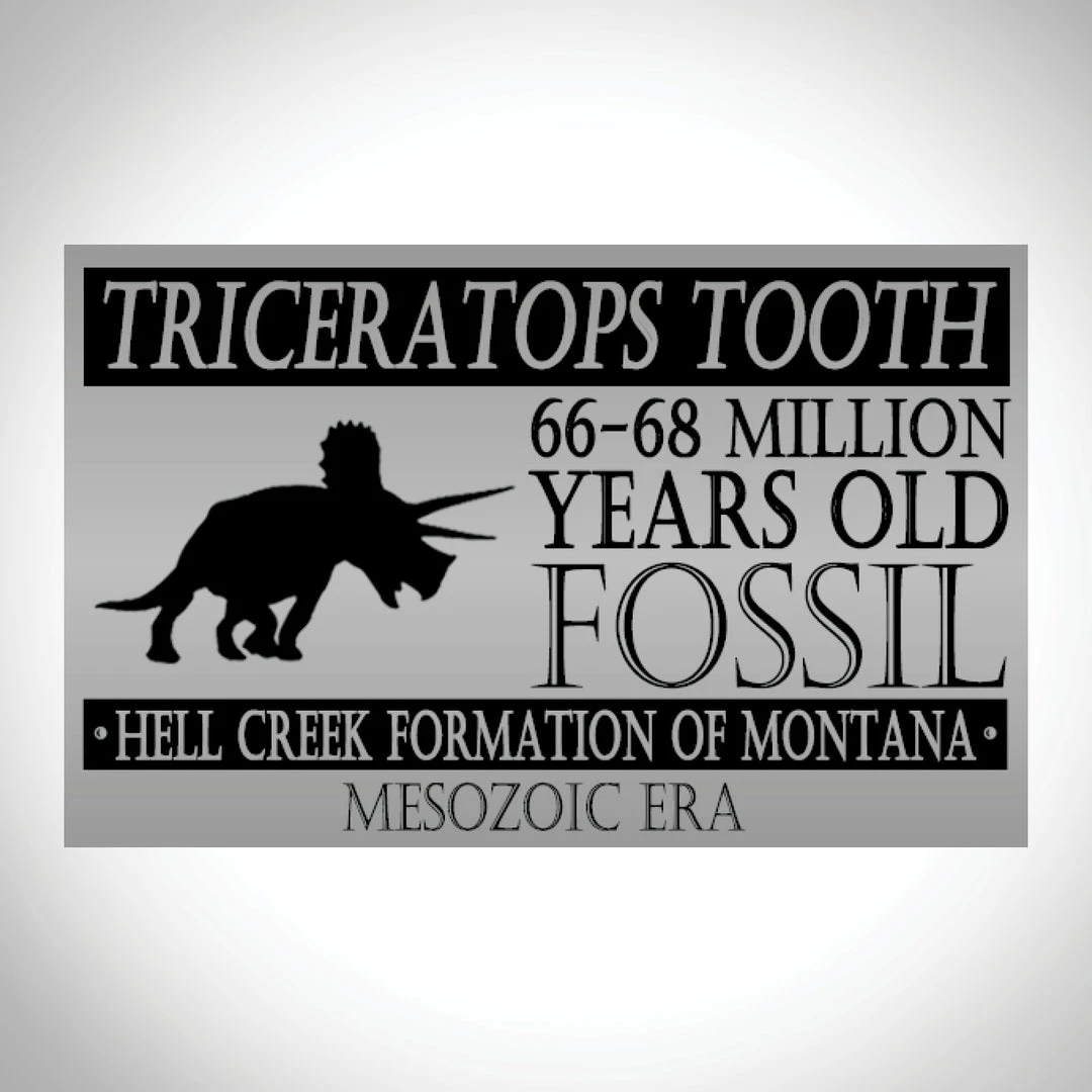 This custom museum display showcases an Authentic fossilized Triceratops tooth found in the Hell Creek Formation of Montana. and is 68-66 million years old.