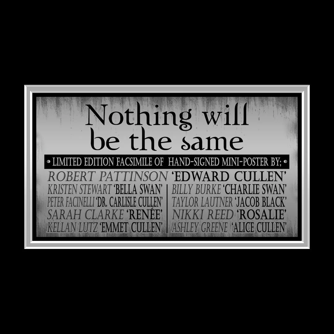 — Originally signed by Robert Pattinson, Kristen Stewart, Peter Facinelli, Sarah Clarke, Kellan Lutz, Billy Burke, Taylor Lautner, Nikki Reed and Ashley Green