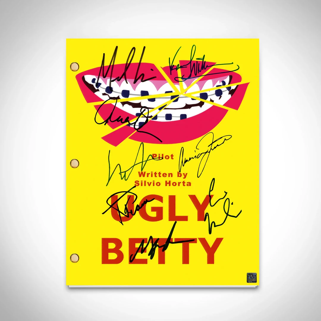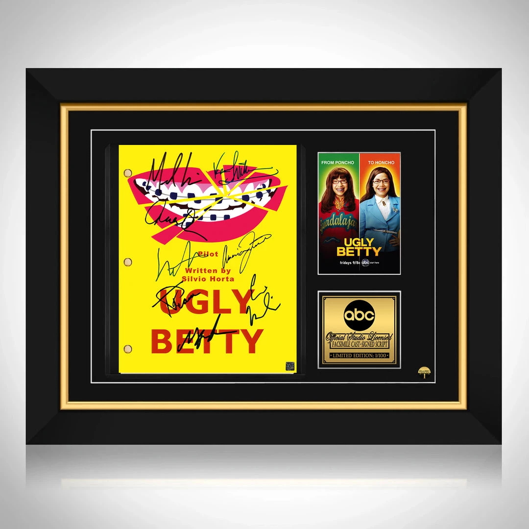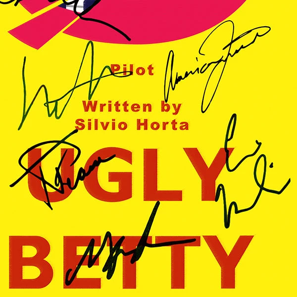 Pay homage to Ugly Betty , with this ABC fully licensed facsimile of the official signed TV Series script, originally signed by actors America Ferrera, Eric Mabius, Tony Plana, Ana Ortiz, Becki Newton, Michael Urie, Mark Indelicato & Vanessa Williams, , of which is strictly limited to 100 units Worldwide and has been approved and numbered accordingly.