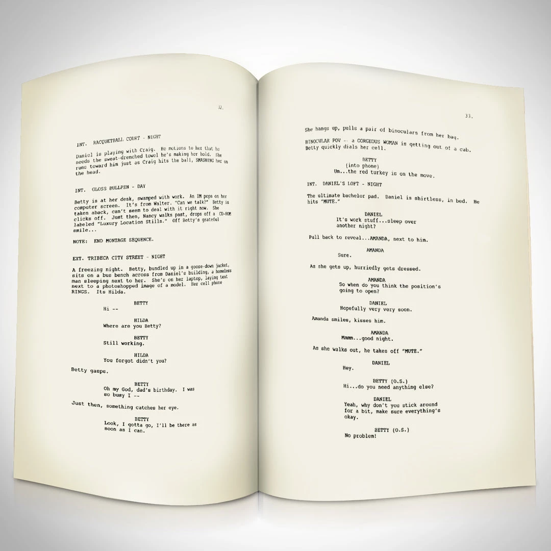 — Collector Grade Proprietary Exclusive VELVET TOUCH water/scratch resistant cover.— Collectible Facsimile of Original Hand-Signed Ugly Betty TV Series Script Custom Frame.