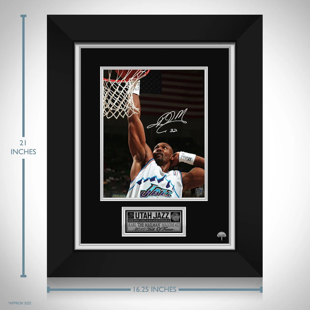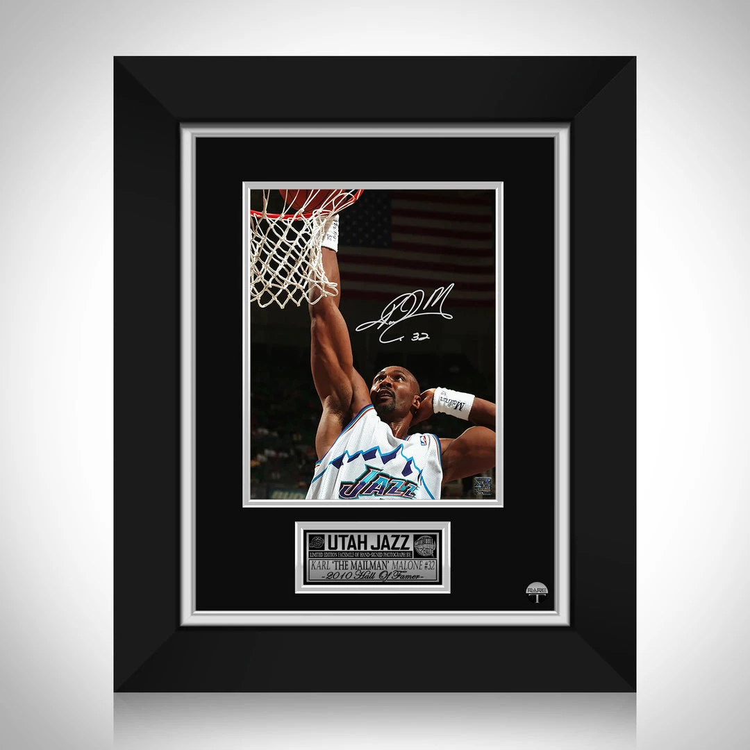 Pay homage to Utah Jazz with this gallery-framed, officially licensed, limited edition facsimile of hand-signed photo, originally signed by Karl Malone of which is strictly limited to 100 units Worldwide, and has been approved and numbered accordingly.