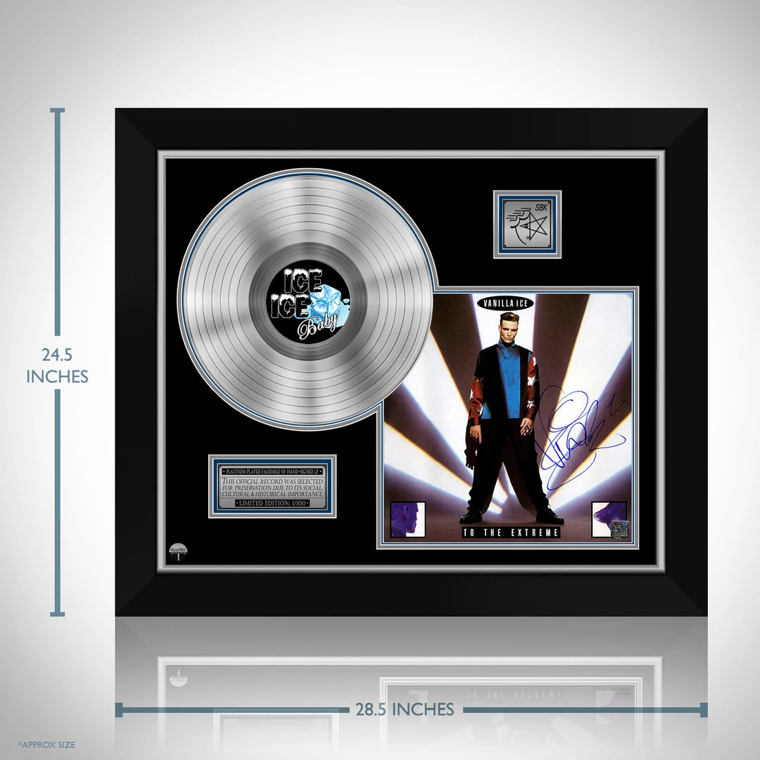 Pay homage to Vanilla Ice , with this gallery-framed, authentic SBK Records fully licensed facsimile of the official Hand-Signed Platinum LP Record and LP Cover To The Extreme Originally signed by Vanilla Ice , of which is strictly limited to 100 units Worldwide and has been approved and numbered accordingly.