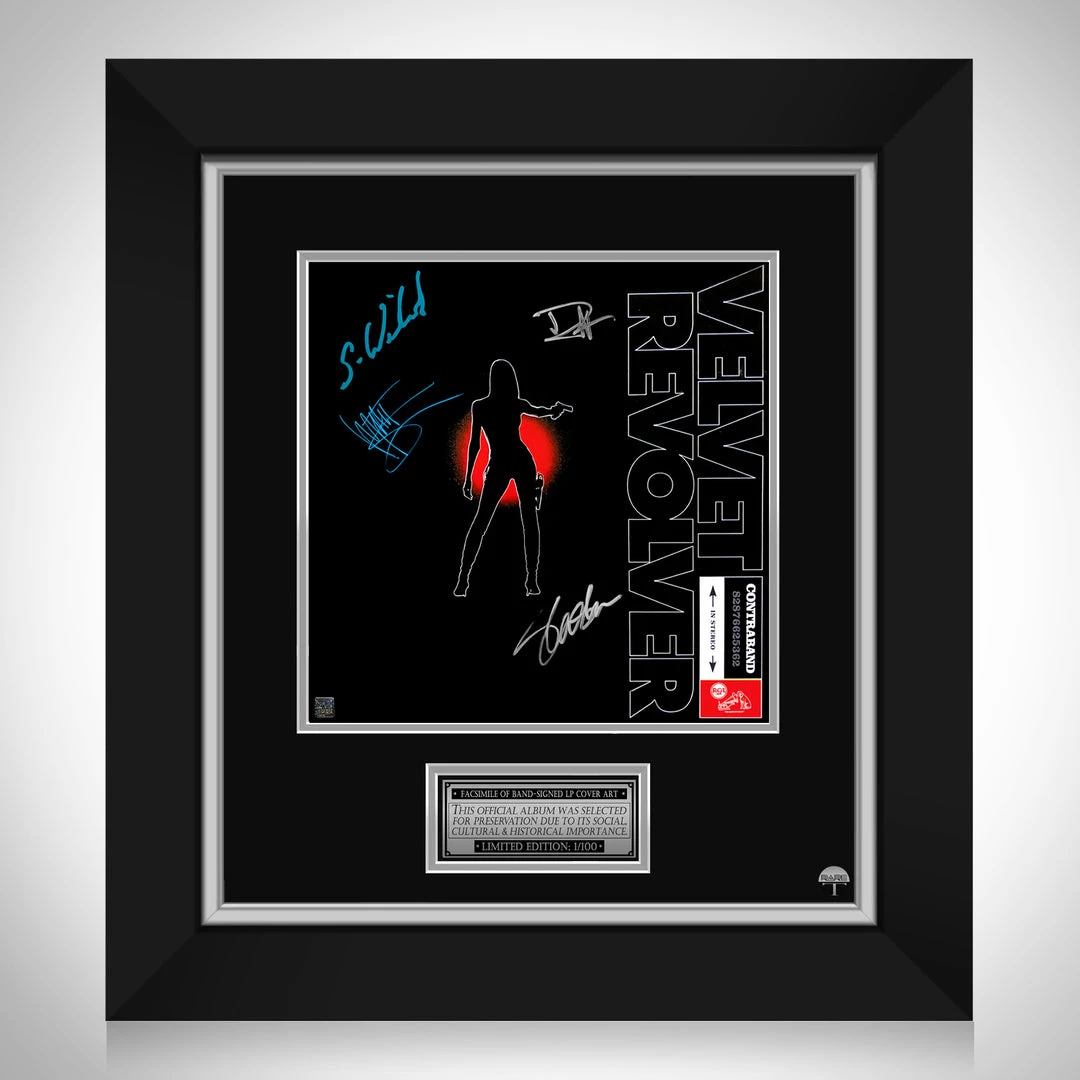 Pay homage to one of the most iconic American hard rock supergroup of all time, Velvet Revolver , with this gallery-framed, officially licensed, limited edition facsimile of the Hand-Signed Contraband LP Cover originally signed by Scott Weiland, Slash, Duff McKagan, Matt Sorum & Dave Kushner , of which is strictly limited to 100 units Worldwide, and has been approved and numbered accordingly.