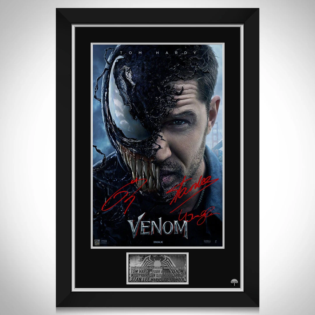 Pay homage to one of the most iconic films of all time, Venom, with this gallery-framed, officially licensed, limited edition facsimile of hand-signed movie mini poster, originally signed by Tom Hardy, Woody Harrelson & Stan Lee , of which is strictly limited to 100 units Worldwide, and has been approved and numbered accordingly.