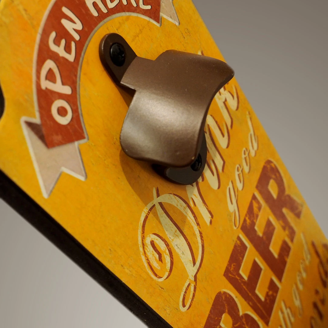 Set the mood with these vintage inspired wood signs featuring a built in bottle opener. Chose between the “Drink good beer with good friends” sign and the “Beauty is in the eye of the beer holder” sign. They are sure to be great conversation starters and will make a great addition to any home bar.