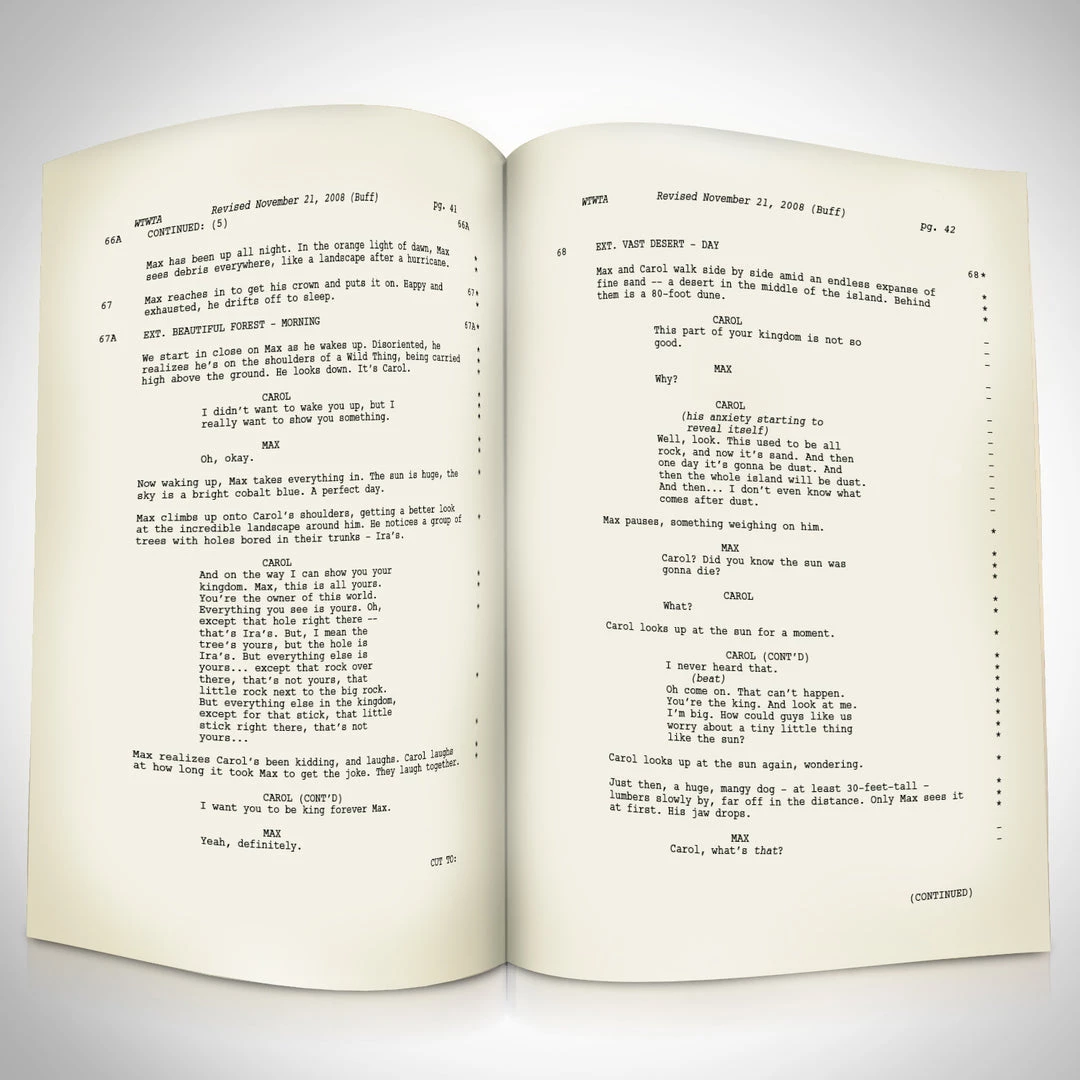 Pay homage to Where The Wild Things Are , with this Warner Bros. Pictures fully licensed facsimile of the official signed movie script, originally signed by actors Tom Hanks, Max Records, Catherine Keener, Mark Ruffalo, James Gandolfini, Lauren Ambrose, Chris Cooper, Catherine O’Hara, Forest Whitaker & Paul Dano , of which is strictly limited to 100 units Worldwide and has been approved and numbered accordingly.