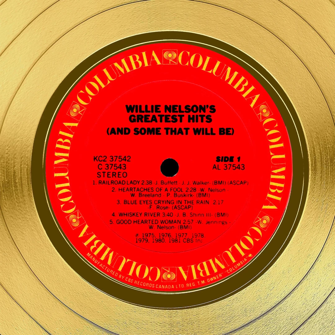 Æ’?? Collectible Willie Nelson Greatest Hits facsimile of hand-signed 24k Gold Plated LP Custom Frame