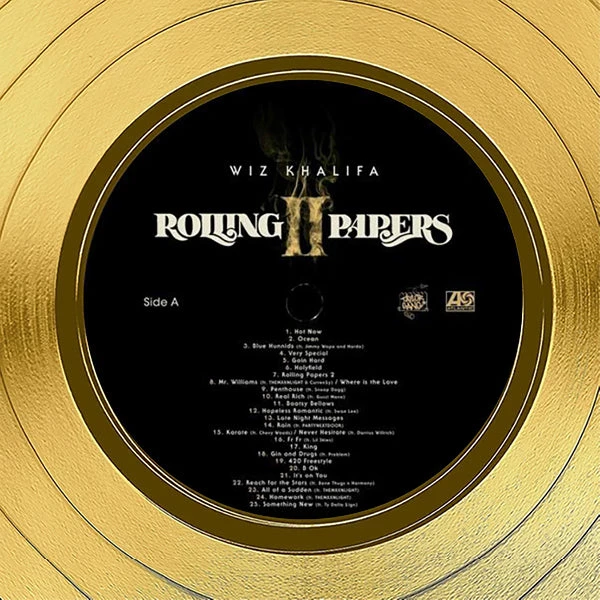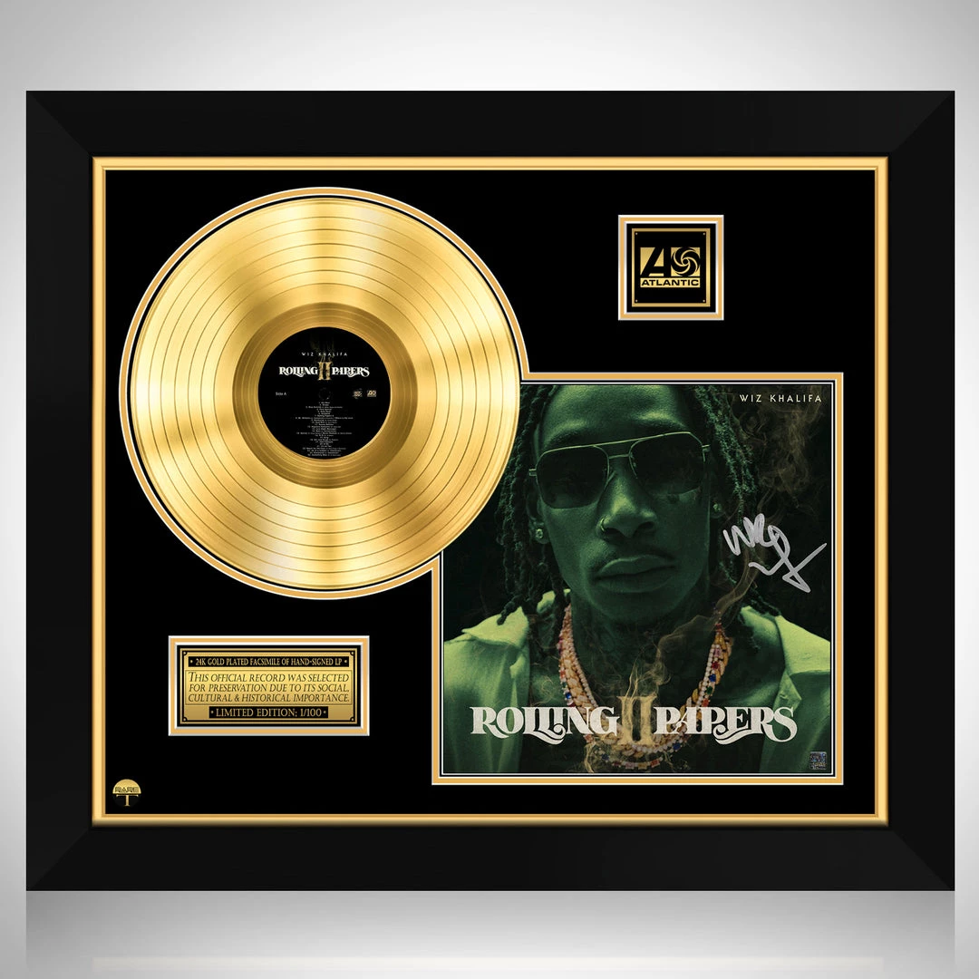 Pay homage to one of the most iconic rapper of all time Wiz Khalifa , with this gallery-framed, authentic Atlantic records fully licensed facsimile of the official Hand-Signed 24K Gold Plated LP Record and LP Cover Rolling Papers 2 Originally signed by Wiz Khalifa , of which is strictly limited to 100 units Worldwide and has been approved and numbered accordingly.