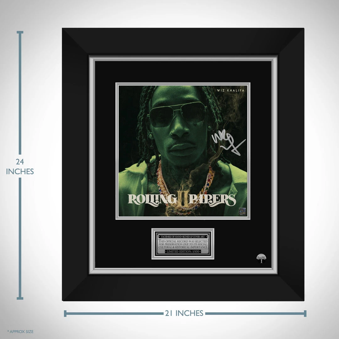 Pay homage to one of the most iconic rapper of all time, Wiz Khalifa , with this gallery-framed, officially licensed, limited edition facsimile of the Hand-Signed Rolling Papers 2 LP Cover originally signed by Wiz Khalifa , of which is strictly limited to 100 units Worldwide, and has been approved and numbered accordingly.