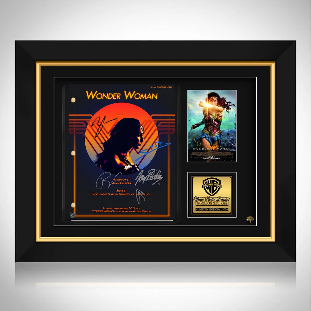 Pay homage to Wonder Woman , with this Warner Bros fully licensed facsimile of the official signed movie script, originally signed by actors Gal Gadot, Chris Pine, Robin Wright, Danny Huston & Zack Snyder , of which is strictly limited to 100 units Worldwide and has been approved and numbered accordingly.