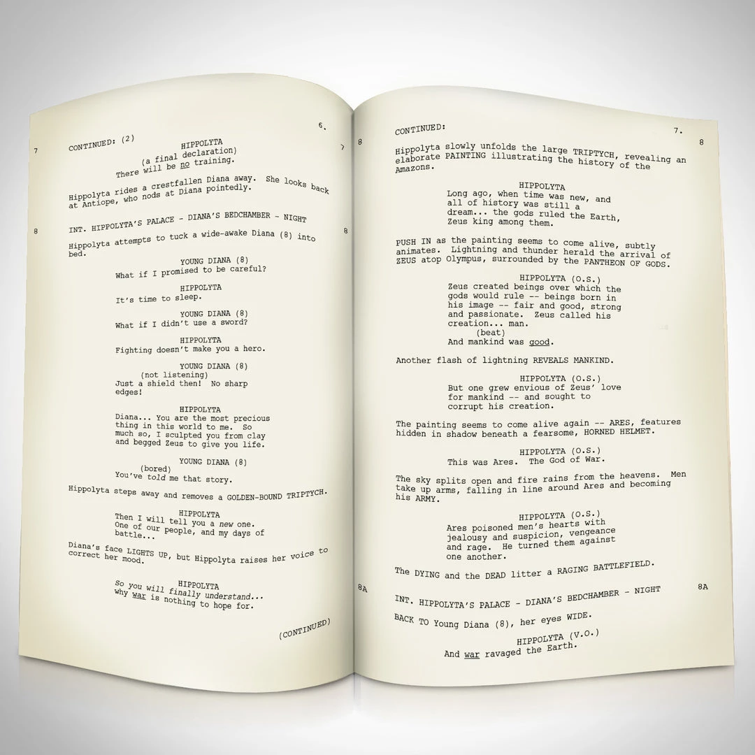 — Collector Grade Proprietary Exclusive VELVET TOUCH water/scratch resistant cover. — Collectible Facsimile of Original Hand-Signed Wonder Woman movie Script Custom Frame.