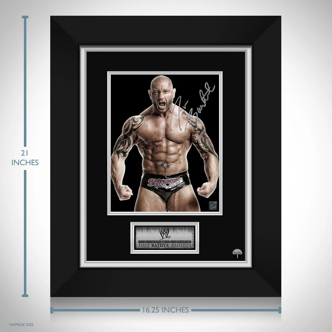 Pay homage to Batista, with this gallery-framed, officially licensed, limited edition facsimile of the Hand-Signed movie promo photo, originally signed by Dave Bautista, of which is strictly limited to 100 units Worldwide, and has been approved and numbered accordingly.