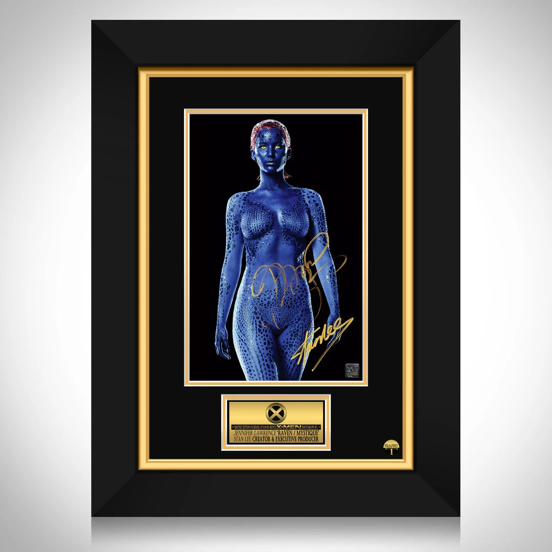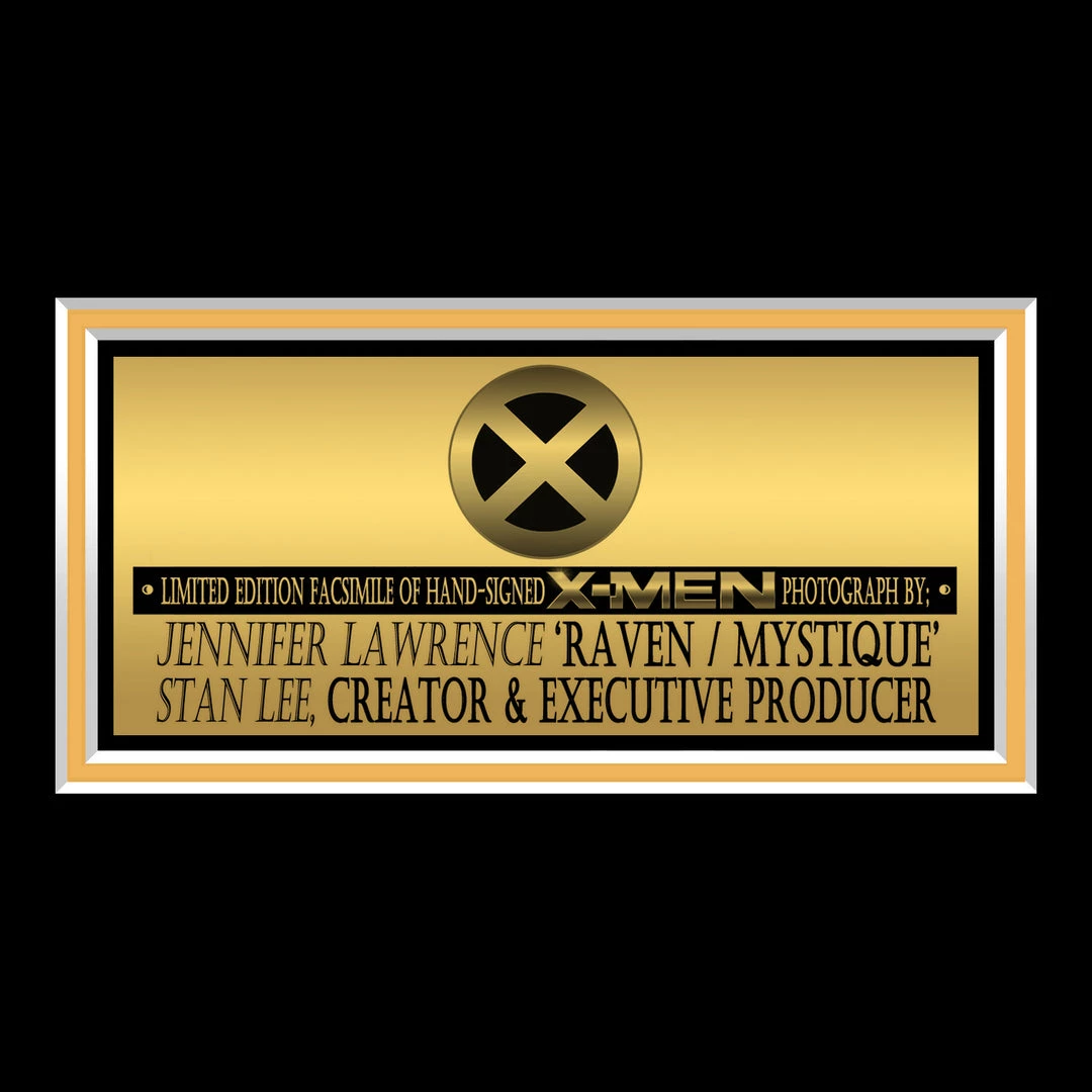 Pay homage to the beautiful, shapeshifting, Marvel Supervillain, Mystique, with this gallery-framed, officially licensed, limited edition facsimile of hand-signed photo, originally signed by portraying actress Jennifer Lawrence & Marvel Comics Co-Founder and former executive producer of all Marvel Movies the late Stan Lee, of which is strictly limited to 100 units Worldwide, and has been approved and numbered accordingly.