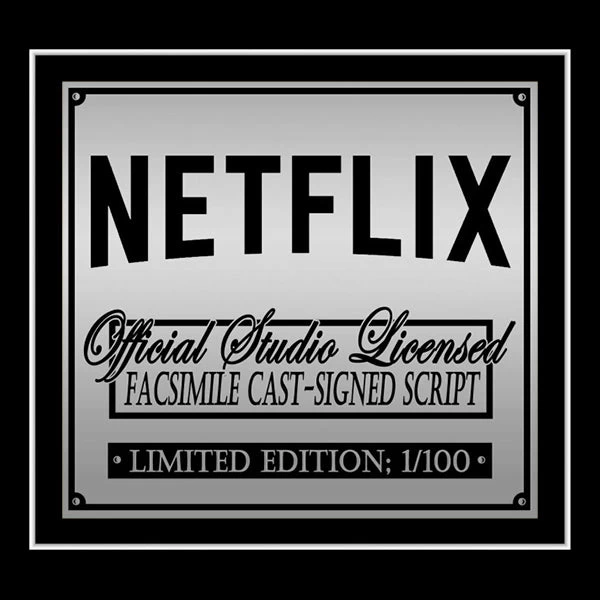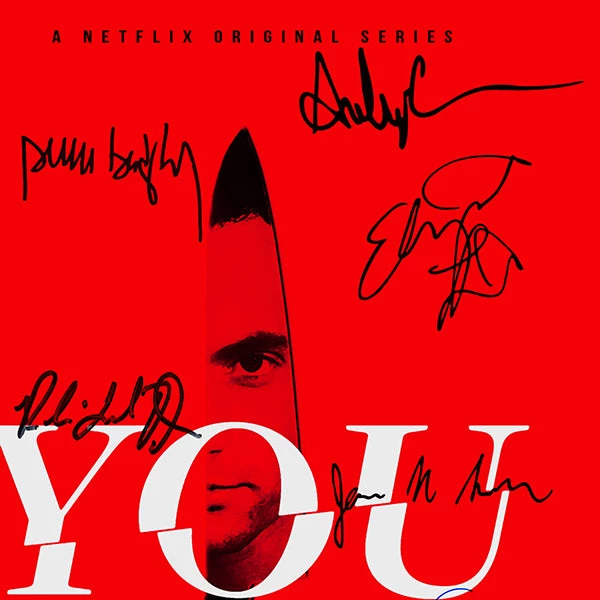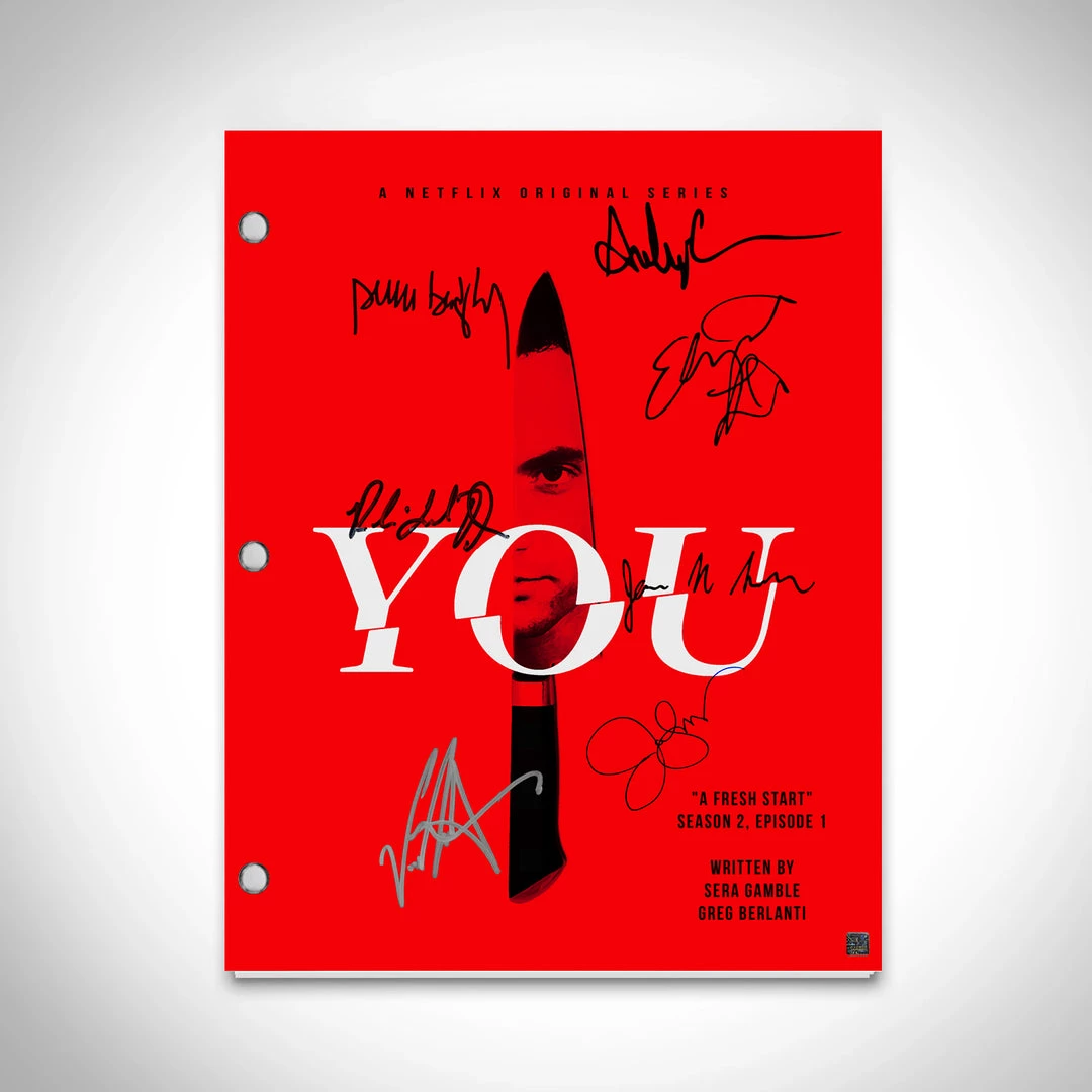Pay homage to You , with this Netflix  fully licensed facsimile of the official signed TV Series transcript, originally signed by actors Penn Badgley, Victoria Pedretti, Amber Childers, Elizabeth Lail, James Scully, Robin Lord Taylor & John Stamos , of which is strictly limited to 100 units Worldwide and has been approved and numbered accordingly.