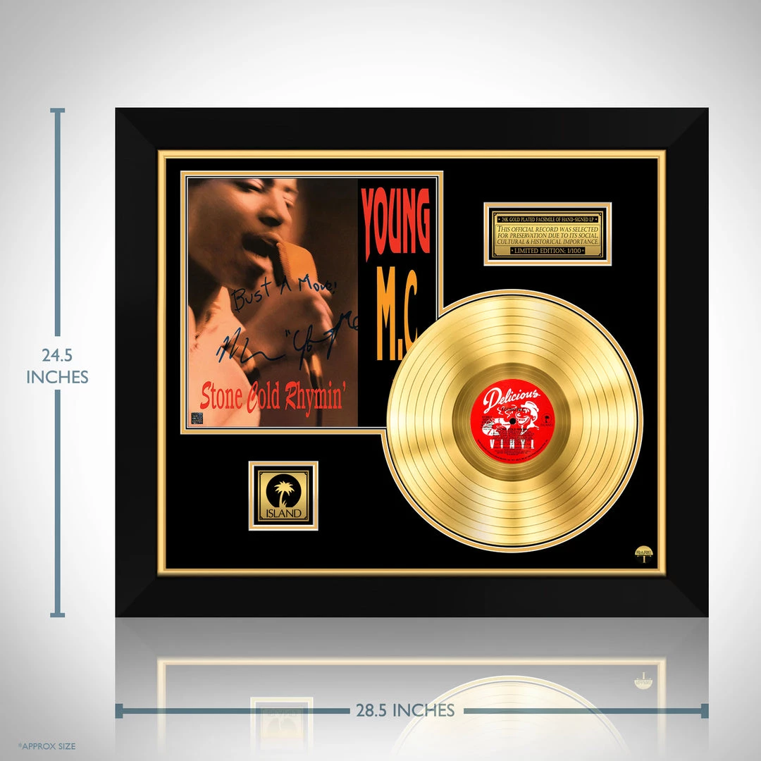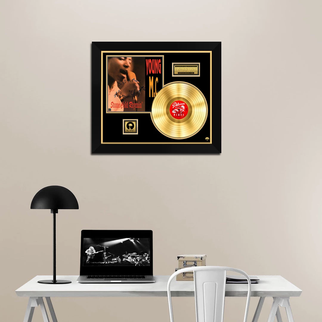 — Collectible Young M.C. Facsimile Hand-Signed 24K Gold LP Custom Frame