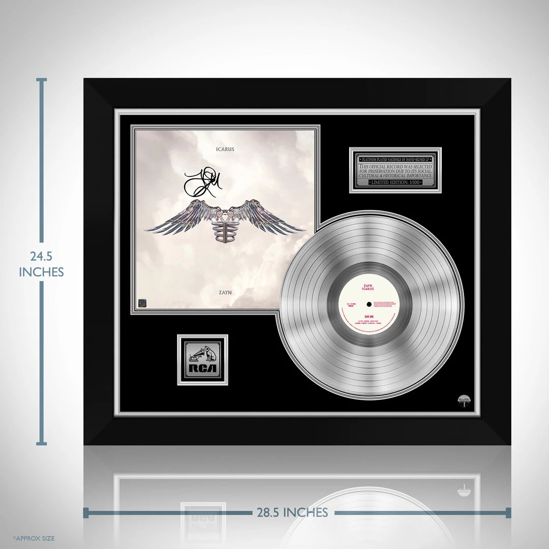 Pay homage to one of the most iconic British singer of all time Zayn Malik , with this gallery-framed, authentic RCA Records fully licensed facsimile of the official Hand-Signed Platinum Plated LP Record and LP Cover Icarus Falls Originally signed by Zayn Malik , of which is strictly limited to 100 units Worldwide and has been approved and numbered accordingly.
