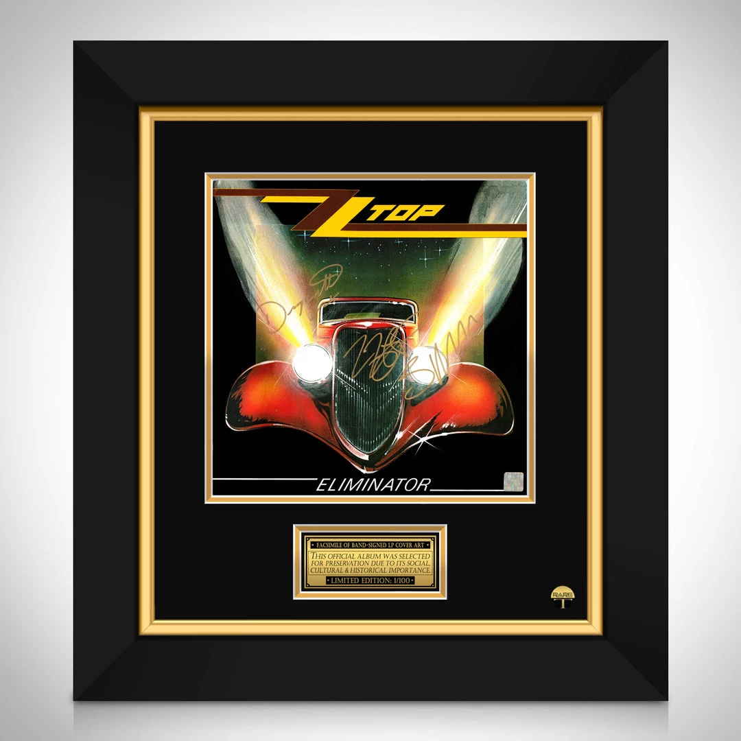 Pay homage to one of the top selling Rock Bands of all time, ZZ Top,with this gallery-framed, officially licensed, limited edition facsimile of the Hand-Signed Eliminator LP Cover originally signed by legendary musical artists, Billy Gibbons, Dusty Hill & Frank Beard, of which is strictly limited to 100 units Worldwide, and has been approved and numbered accordingly.