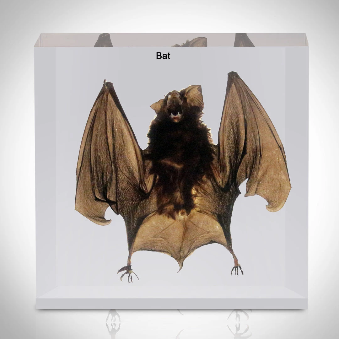 This educational gallery display showcases an authentic Large 5″ Japanese House Bat (Pipistrellus Abramus), protectively encased in a polished clear resin and acrylic display. These species are all different and unique that can be viewed from all sides to see details and colours up close.