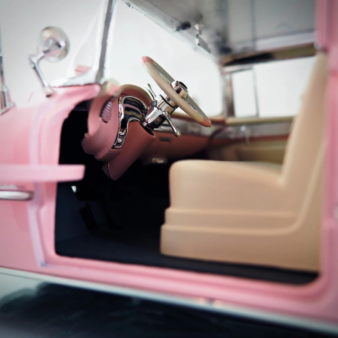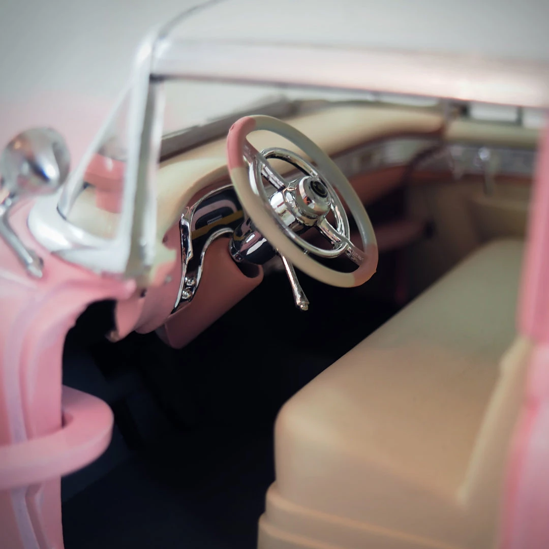 This LIMITED EDITION, ELVIS PRESLEY-1955 PINK CADILLAC FLEETWOOD is 12 inches long and true-to-scale in every detail. Die-cast metal body, metal chassis, detailed wheels, chrome accents and accurate factory paint job. Detailed with dozens of specially applied chrome parts to exactly recreate the 1955 Fleetwood.