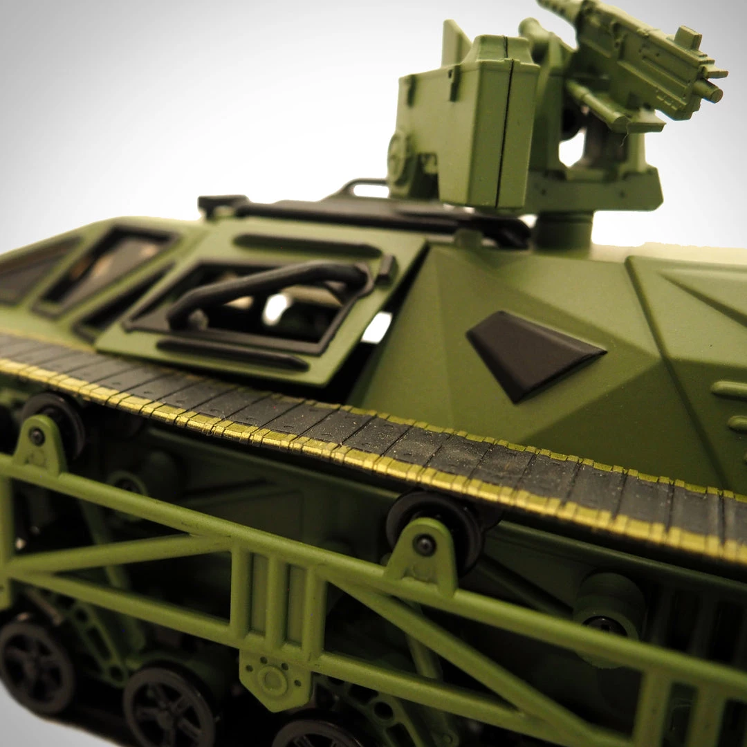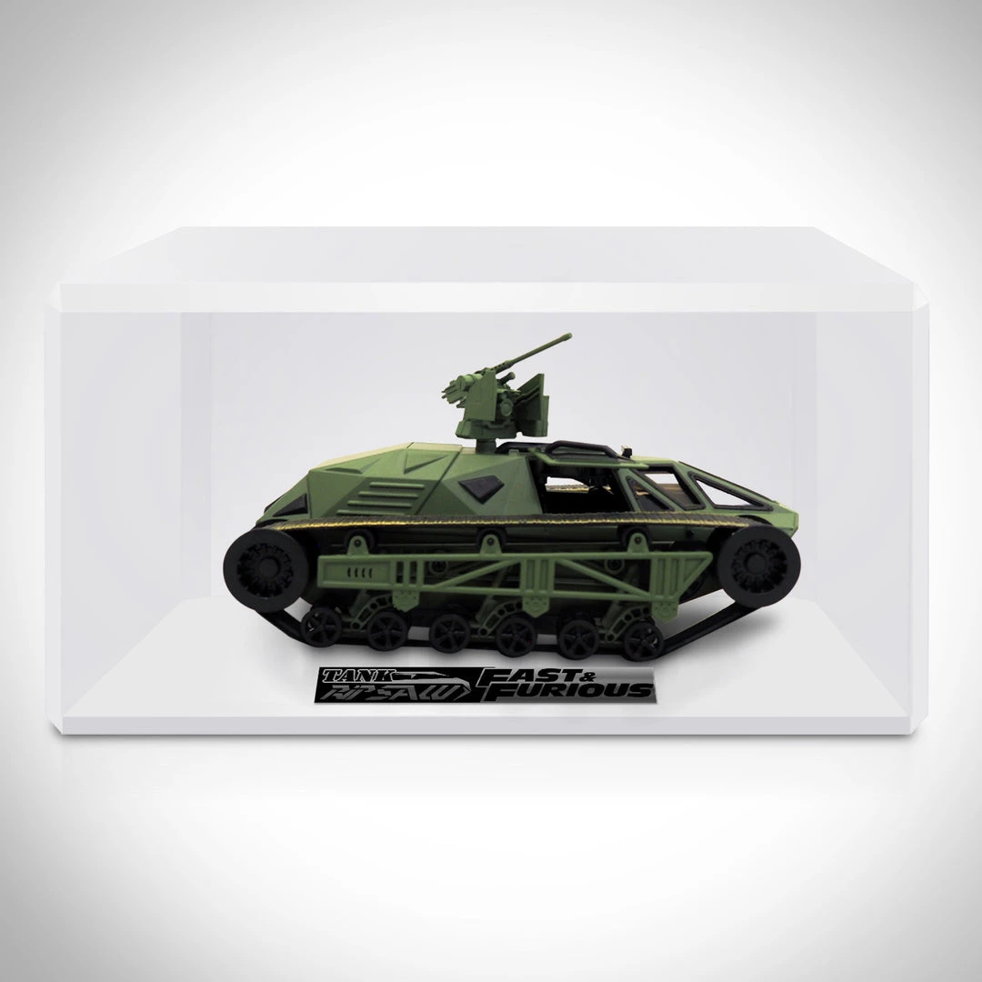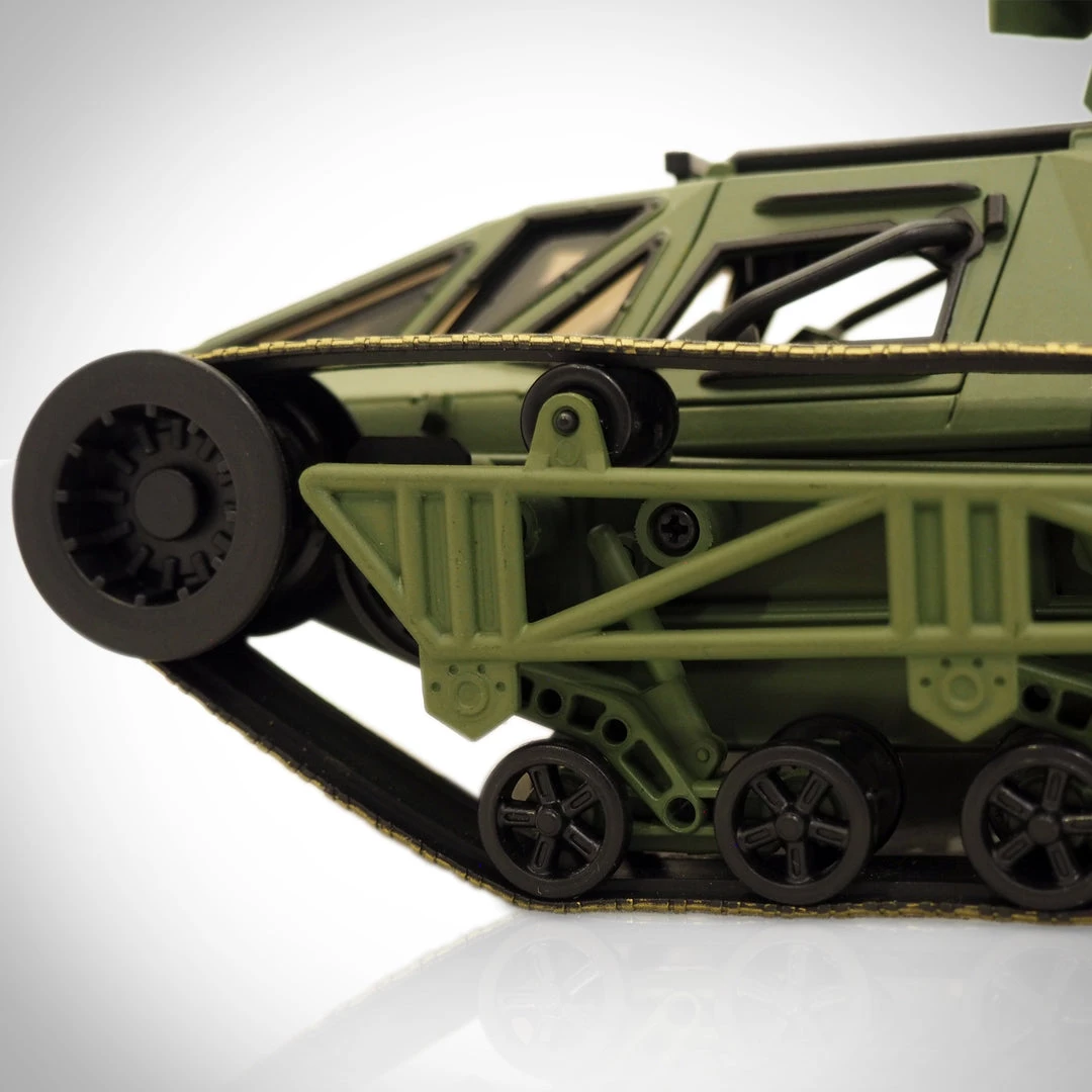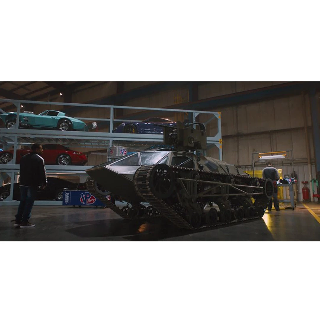 This fully licensed Ripsaw Tank 1:24 die-cast car is true to scale in every detail: die-cast metal body, metal chassis, detailed wheels, chrome accents and accurate paint job. The tank features free wheeling with rubber tank tracks. Detailed with dozens of specially applied parts to precisely recreate the Ripsaw Tank featured in The Fate Of The Furious movie.