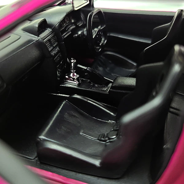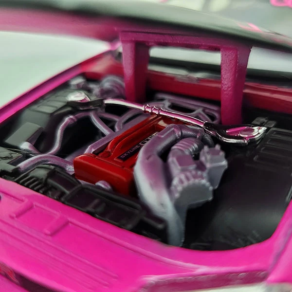 The Japanese most loved fictional character originally – Kitty White/ Hello Kitty, has arrived with her 2002 Nissan Skyline GT-R diecast car. This Metal diecast collectible model car measures at 10.5″L x 4″W x 3″H with an openable hood, trunk and side doors, chrome parts, and decorated with the iconic Hello Kitty graphics. The metal figure with her race car in glitter enamel pick paint job, matte black finish on hood, roof and spoiler, with an incredibly detailed interior – makes this mean ride a must for any car collector.