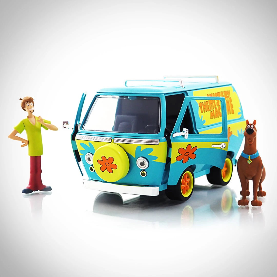 From the animated series presents this high quality die-cast vehicle of the Mystery Machine with exterior styling directly from the Scooby-Doo cartoons! Vehicle features opening doors, detailed interior and rolling wheels. Includes Shaggy and Scooby at approximately 3 inches tall. The 1:24 scale vehicle measures approximately 6 inches long and 3.5 inches high, heavy die cast metal body, molded details and chrome accents with real rubber tires.