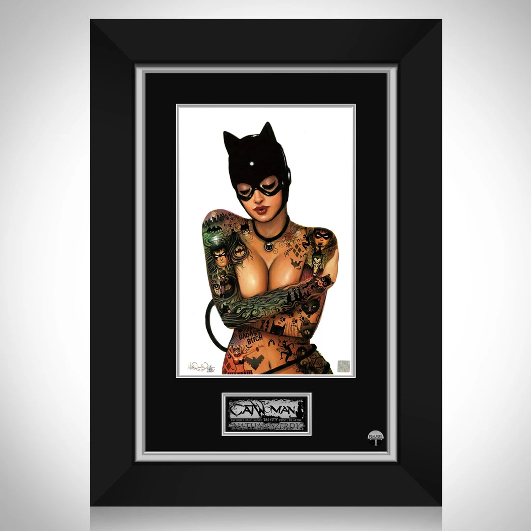 Pay homage to Catwoman and famous artist Nathan Szerdy with this Hand-Signed, gallery-framed artwork print ‘Bad Kitty’ signed by artist Nathan Szerdy.