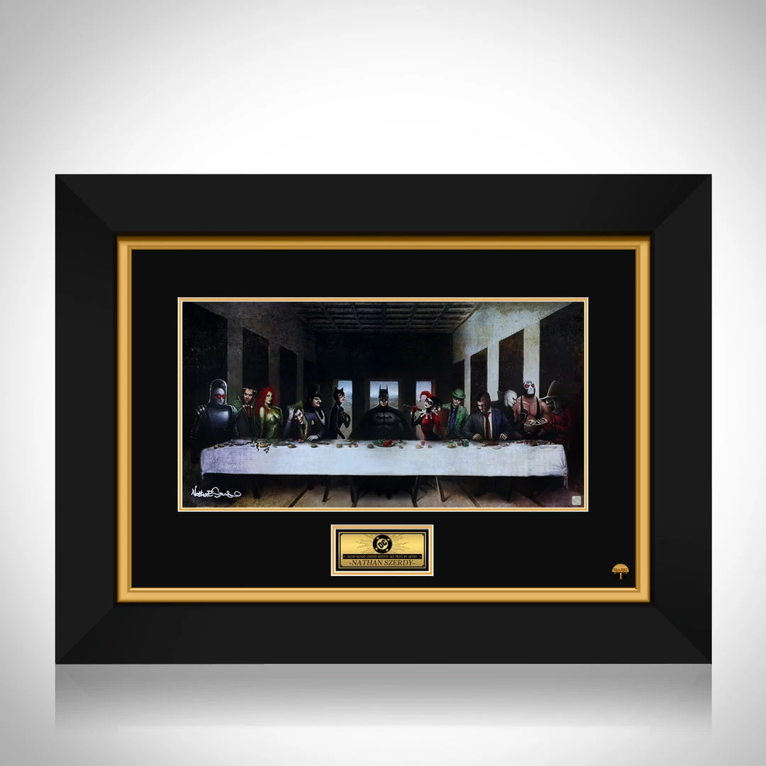 Pay homage to DC Comics and famous artist Nathan Szerdy with this Hand-Signed, gallery-framed artwork print of ‘The Last Supper’ autographed by artist Nathan Szerdy.