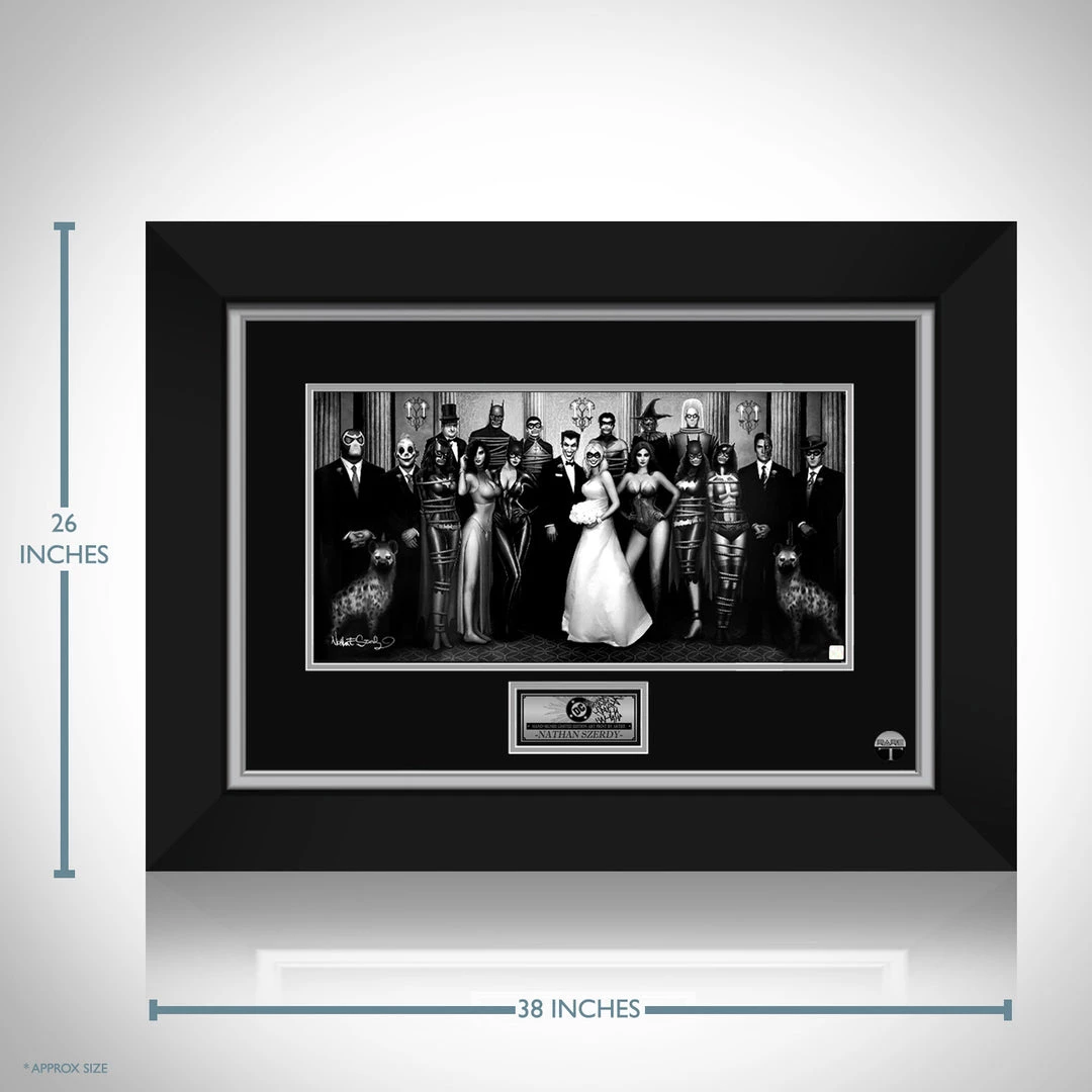 Pay homage to DC Comics and famous artist Nathan Szerdy with this Hand-Signed, gallery-framed artwork print ‘DC Wedding‘ autographed by artist Nathan Szerdy.