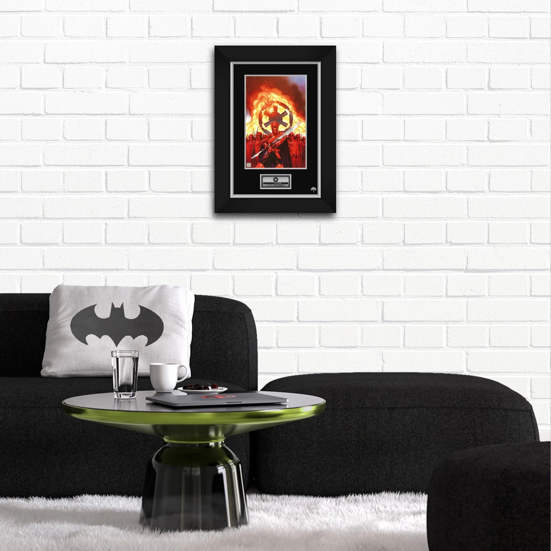 The triple matted display is mounted in a high-quality wood frame with metallic fillet trim and finished with protective glass to keep it looking pristine. The customized descriptive metallic plaque, in addition to the detailed finishing and openings, add to the elegant and sophisticated gallery quality look.