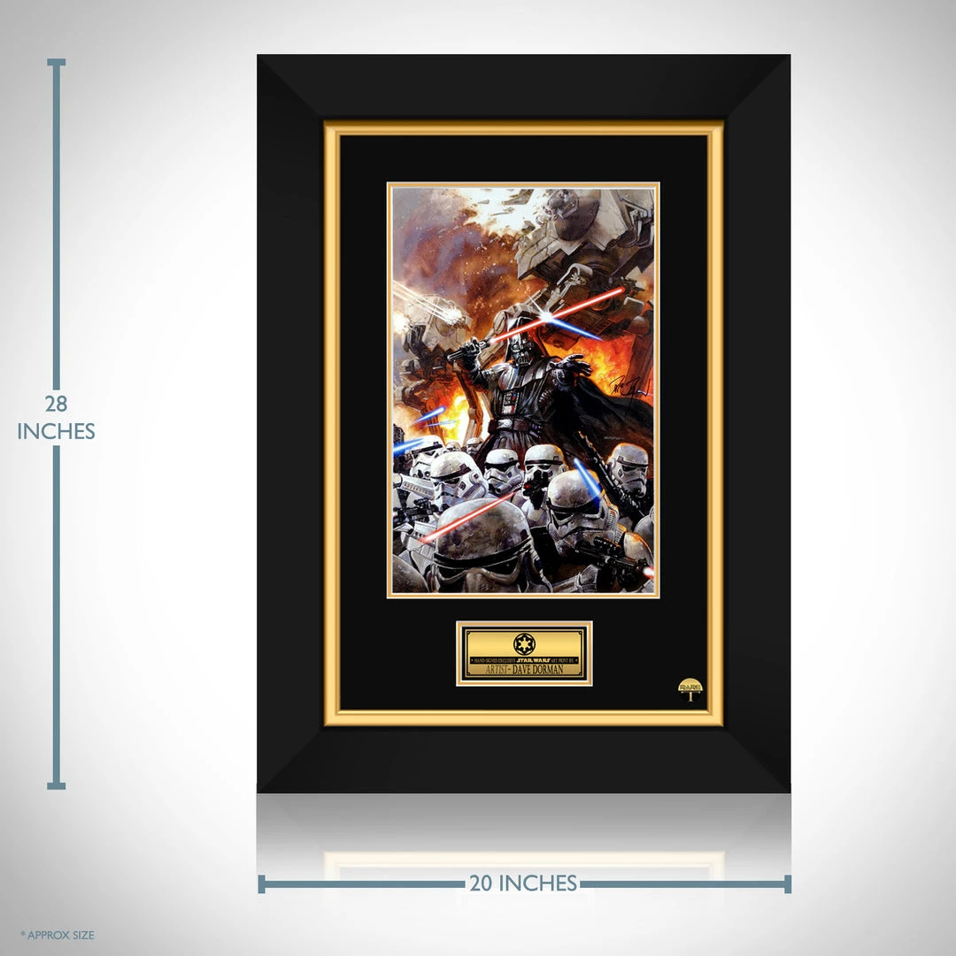 Pay homage to Darth Vader and one of the most iconic movie sagas of all time, Star Wars with this Hand-Signed gallery-framed Darth Vader with Stormtroopers original artwork, autographed by famous illustrator, Dave Dorman.