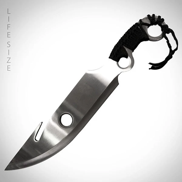 This accurately detailed prop is a tribute to the dagger first used in the award winning video game Destiny, by the iconic character Hunter Class. Forged by hand out of 440 stainless steel, and measuring 16 inches, it is fully functional, sharpened, and ready for cutting. The original design is genius, with a buck knife profile featuring a skinner guthook-type feature and circular cutout on the blade. More shocking is the handle design of the Hunter Knife Destiny Dagger. It is unlike any other and clearly inspired by the Kukri pattern.